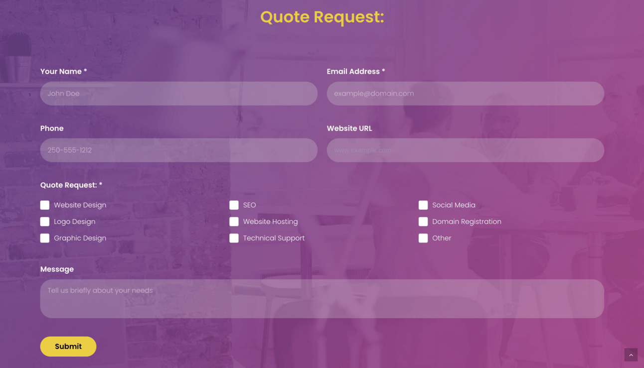 This is a quote request page from a web designer… but there’s no chance in hell I’d hire them.