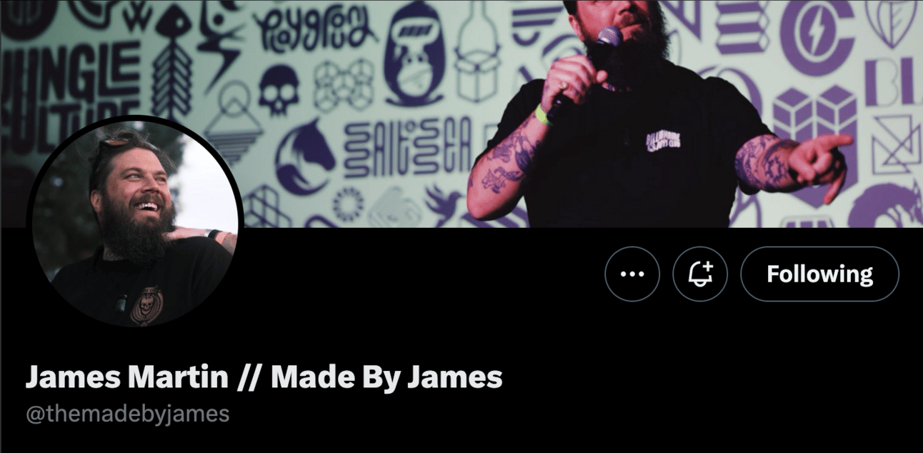It nicely ties together his identity — even when using different coloured backgrounds.